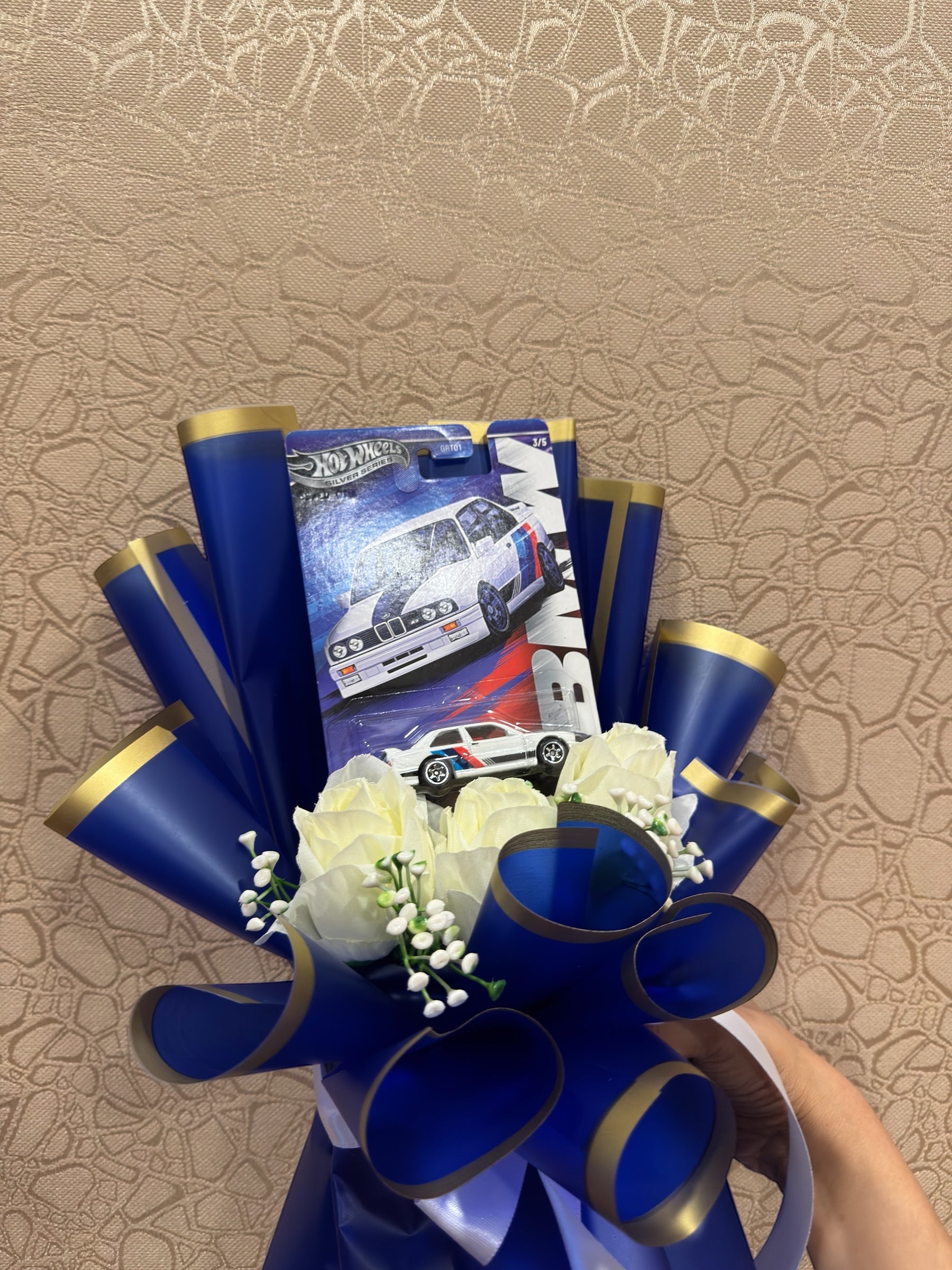 Surprise a car enthusiast with our Hot Wheels BMW 1992 M3 Bouquet, beautifully paired with white artificial roses for a sophisticated touch. Perfect for birthdays, anniversaries, or special celebrations, this bouquet combines speed, style, and elegance.