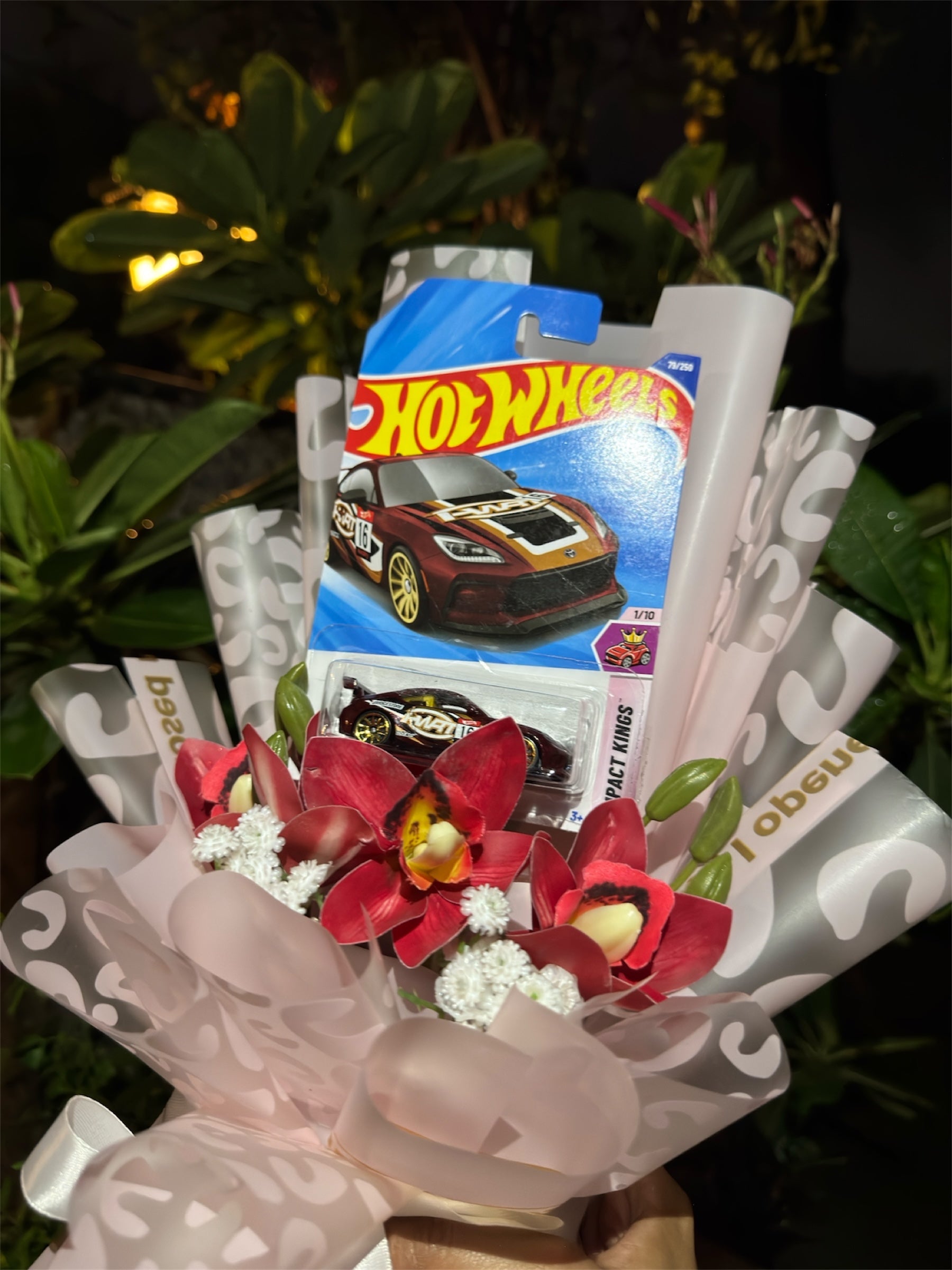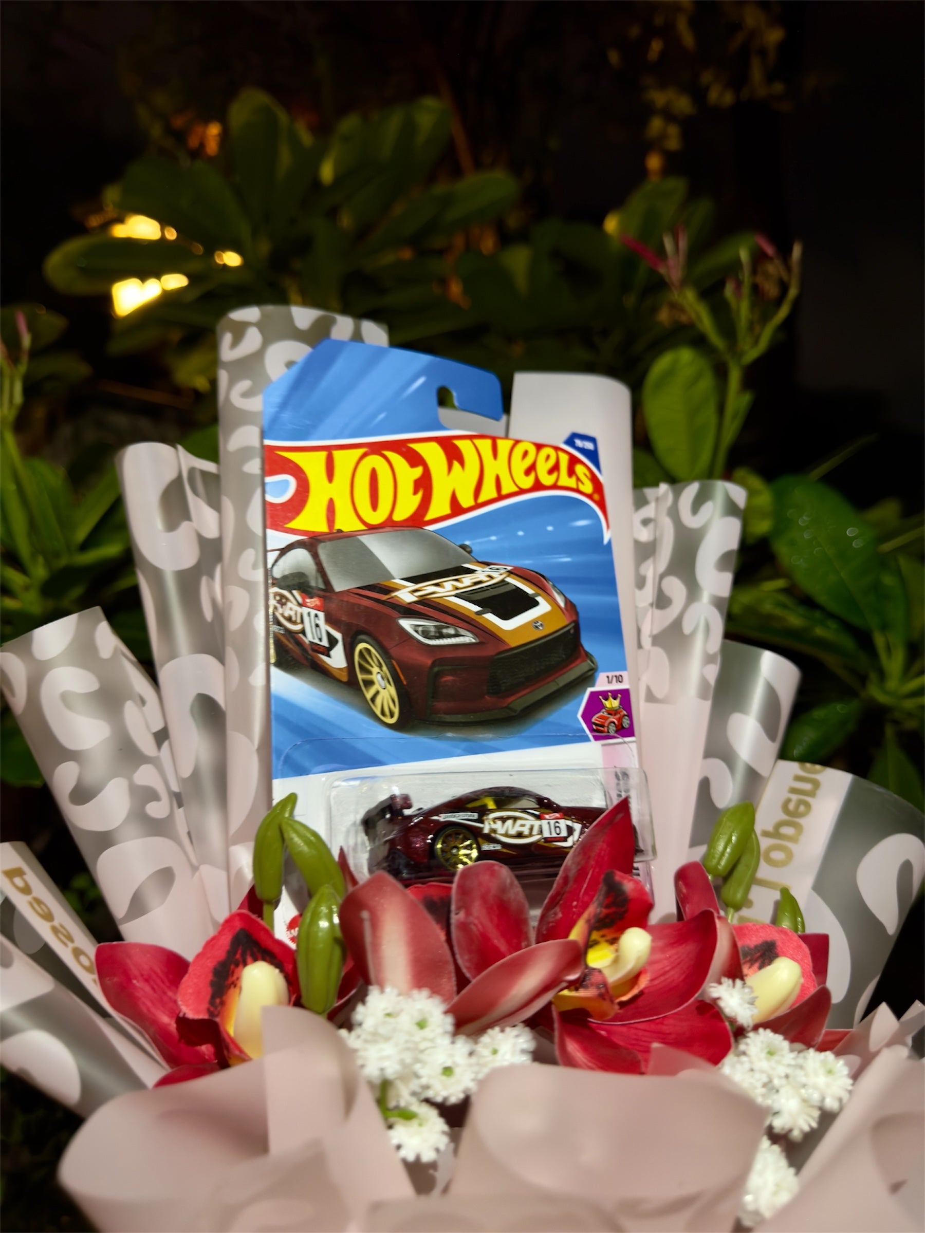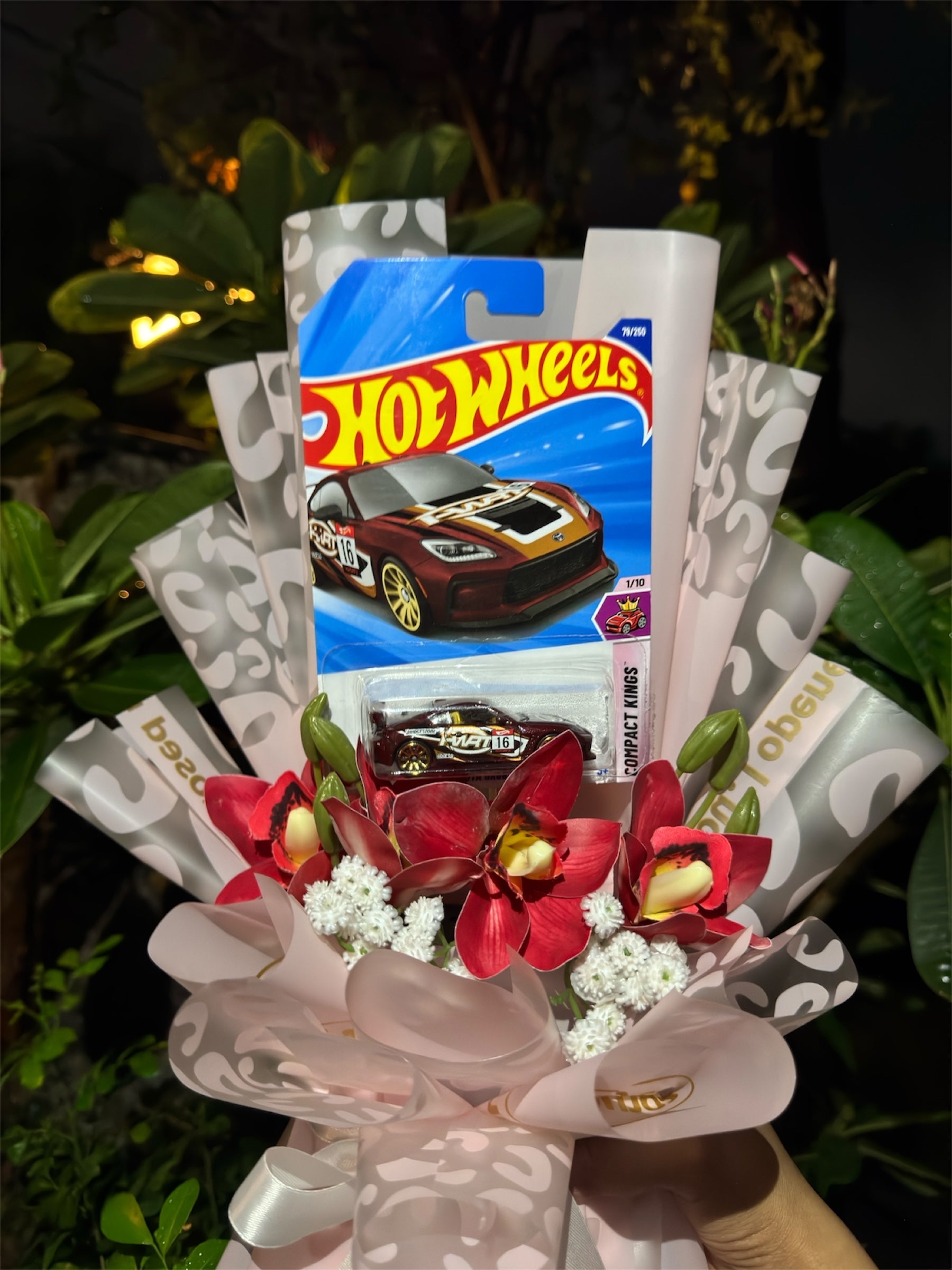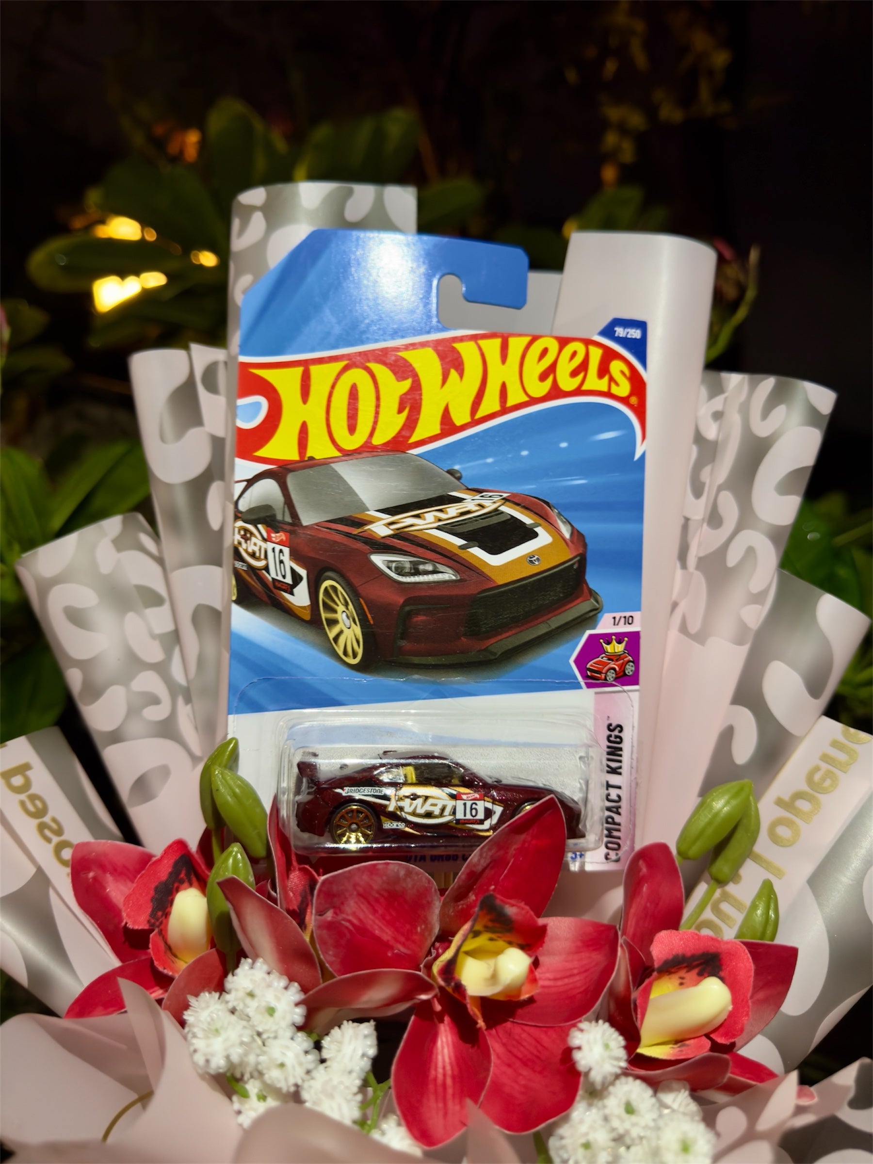 Elevate your gifting experience with Toyota GR86 Cup Orchid Luxe, a luxurious Hot Wheels bouquet that fuses the thrill of motorsport with the refined beauty of florals. This unique creation features the powerful and stylish Toyota GR86 Cup Hot Wheels collectible, framed by vibrant red Cymbidium orchids — a symbol of strength, passion, and timeless elegance.