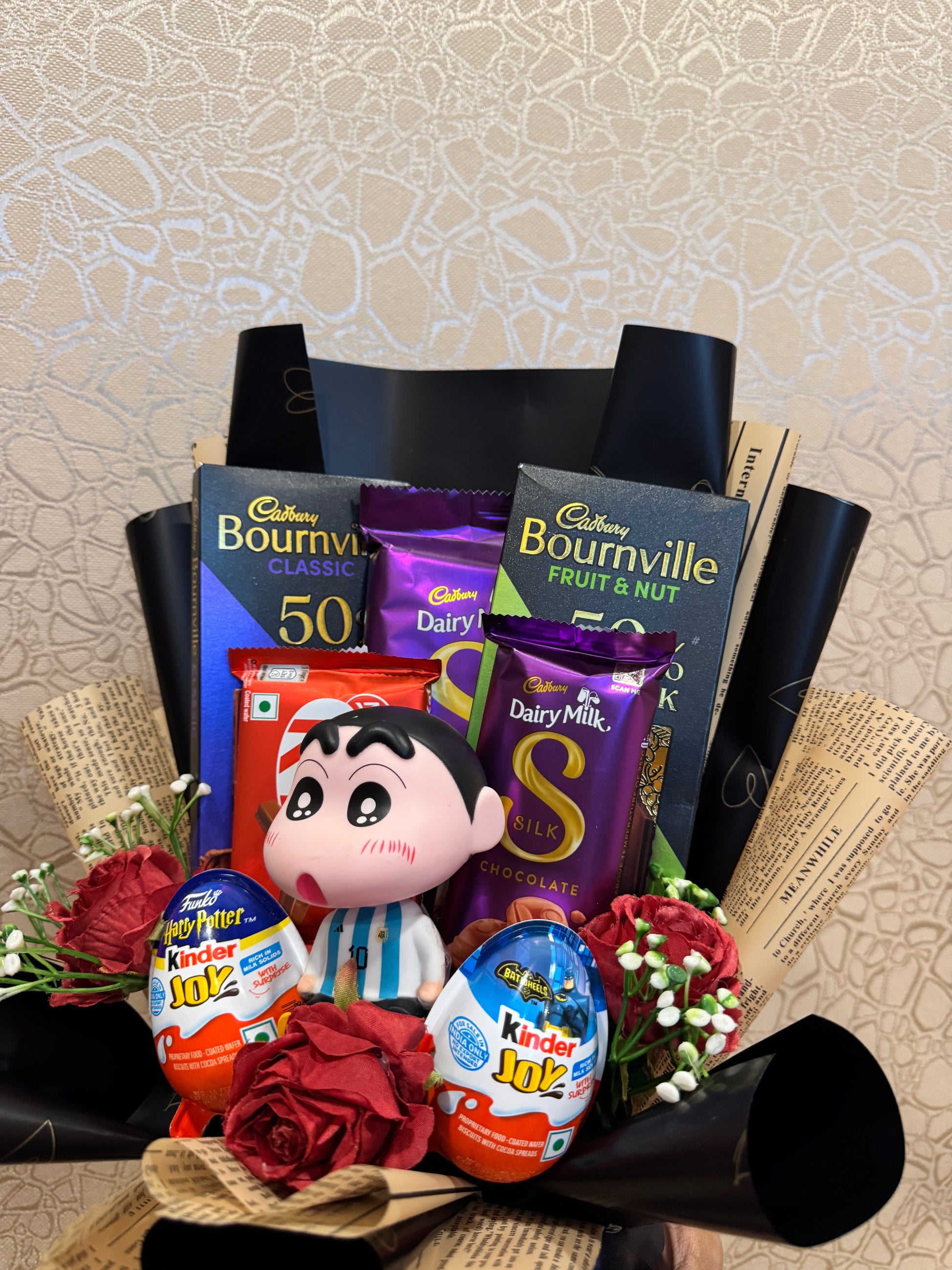 Looking for a gift that is sweet, stylish, and full of joy? Our exclusive chocolate bouquet combines premium chocolates, cute cartoon vibes, and elegant décor – making it a perfect choice for birthdays, anniversaries, surprises, or just to make someone smile.