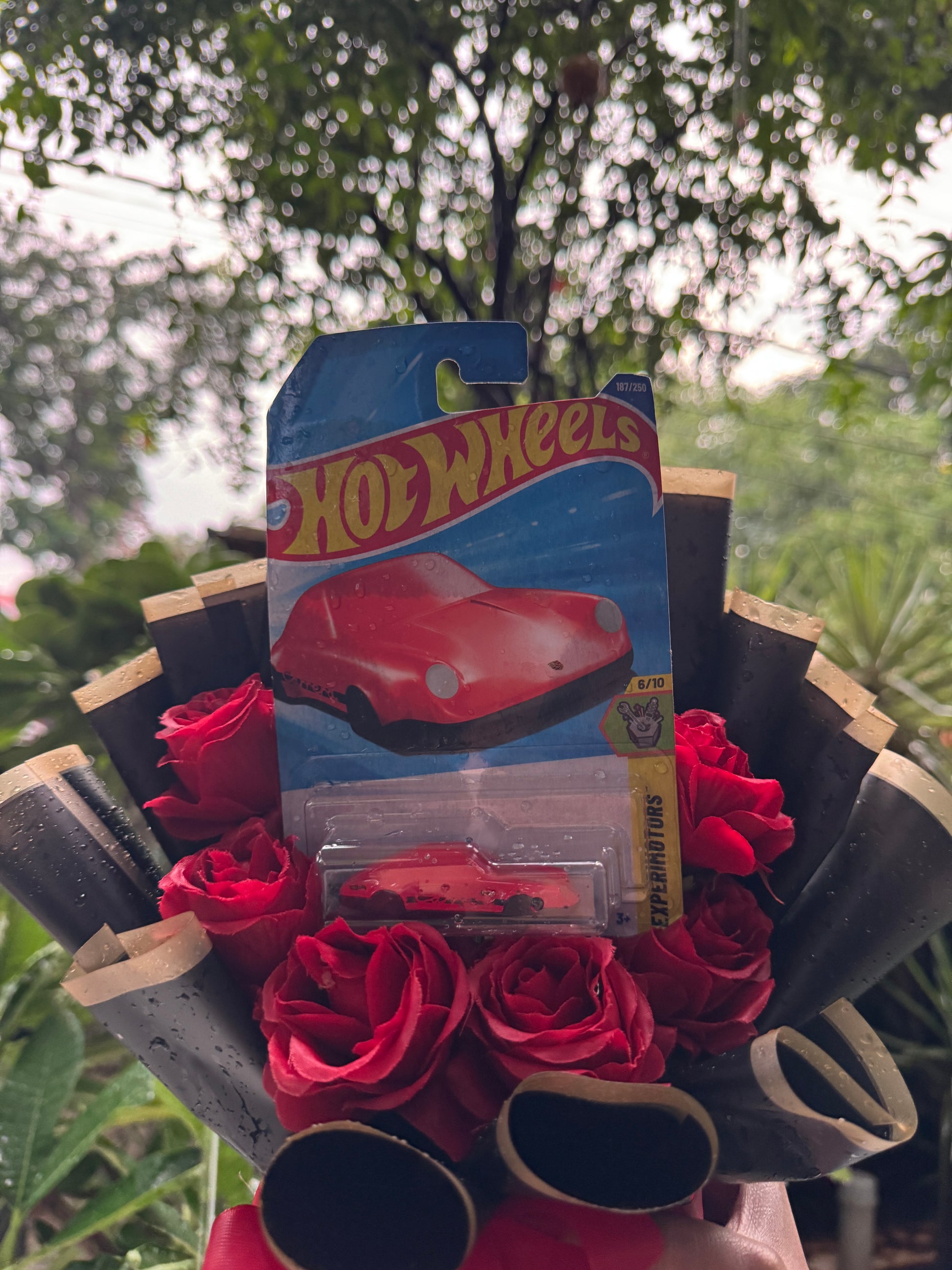 Whether you’re surprising a car enthusiast, a Hot Wheels collector, or someone who simply loves standout gifts, this unique bouquet blends style, nostalgia, and luxury into one unforgettable experience. The Porsche Hot Wheel showcased in the center is genuine, high-quality, and highly sought-after – making it the heart of this exclusive gift.